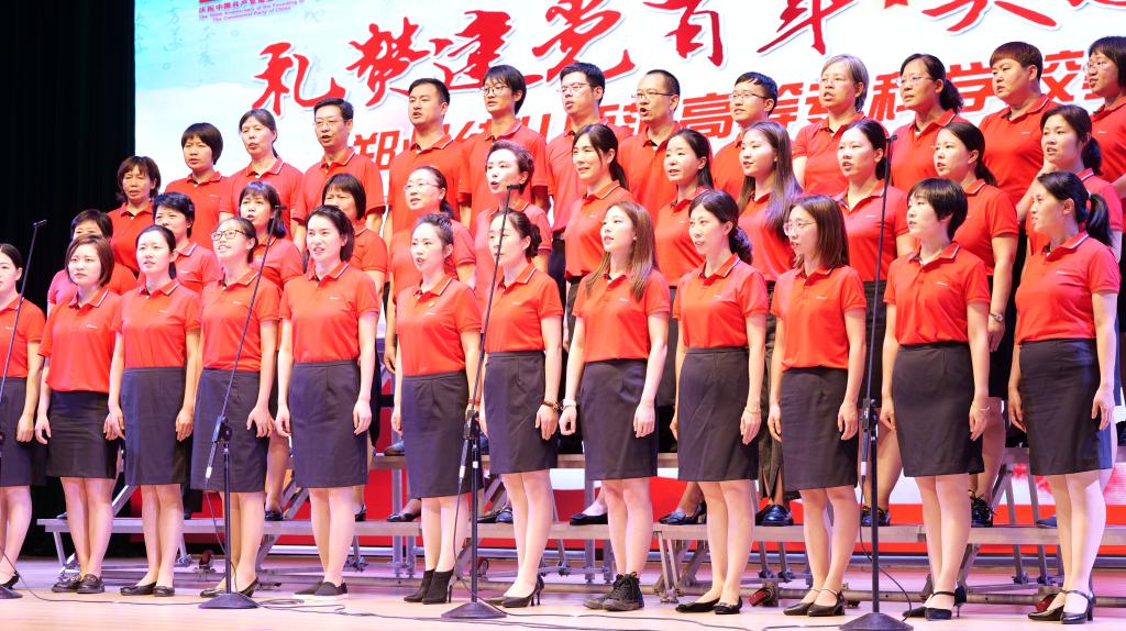 “没有共产党就没有新中国……”、“团结就是力量……”、“唱支山歌給党听……”,伴随着一首首慷慨激昂的嘹亮歌声,郑州幼专“礼赞建党百年 矢志为党育人”教职工合唱比赛在杜岭校区大礼堂拉开了帷幕。