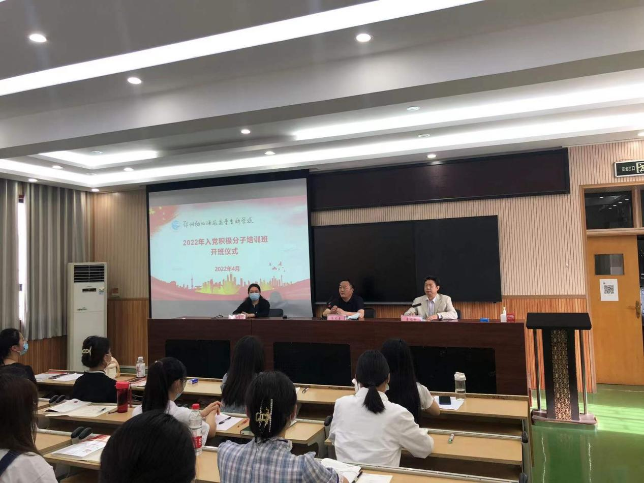 为全面学习贯彻落实党的十九届六中全会精神,进一步加强对入党积极分子的培养教育,提高党员发展质量,4月24日上午,beat365杜岭校区2022年入党积极分子培训班开班。党委委员、副校长张元奎出席开班仪式、学生党支部书记李元奇、思政党支部书记梁彩霞以及前期经过选拔培养的入党积极分子参加了此次开班仪式,仪式由李元奇书记主持。