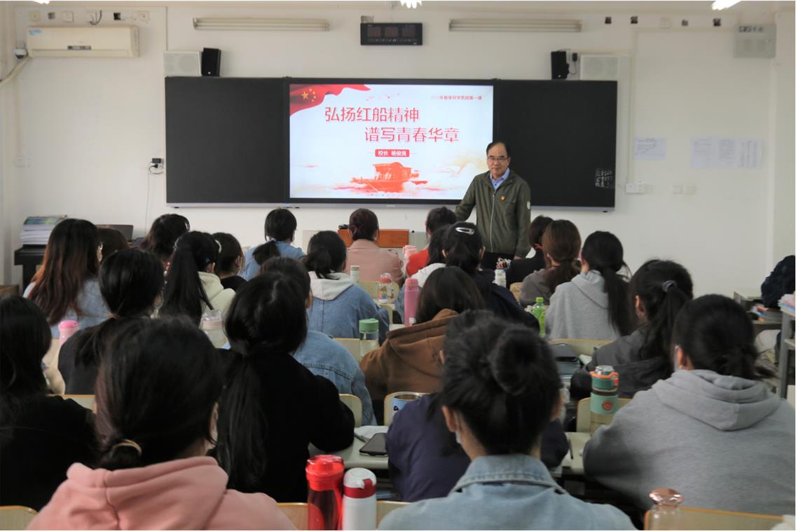扬帆正当时,红船再出发。最后,杨校长寄语青年学生,希望学生们有坚定永远跟党走的理想信念、有敢于突破前人的勇气和智慧、有不畏艰难的决心和毅力、有不负党和人民的胸襟和抱负。鼓励青年学子学习先进知识,培养良好品德,发扬创新精神,继承党的革命传统,不负时代与韶华,不负党和人民的殷切期望,续写中华民族伟大复兴的新篇章。