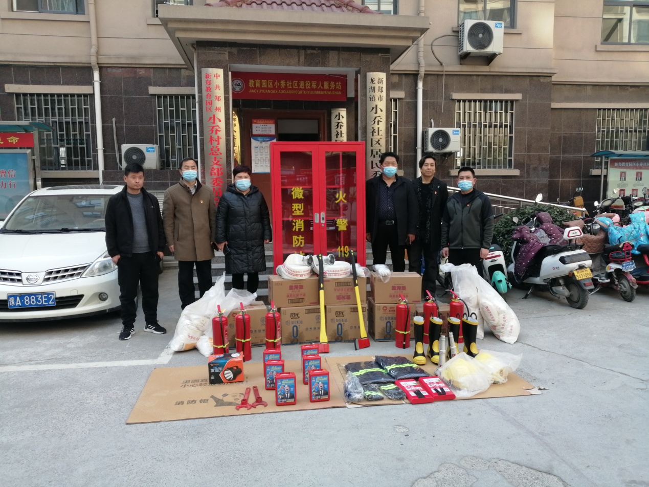 张校长代表学校对小乔社区捐赠消防器械,与小乔社区合作成立社区微型消防站,并指出社区微型消防站是扑救初期火灾主要力量,对于稳定火灾形势、减少人员伤亡具有重要意义。驻村第一书记、社区领导对学校的捐赠表示感谢,提出要以此次活动为契机持续营造消防安全氛围,防消结合,杜绝火灾发生。