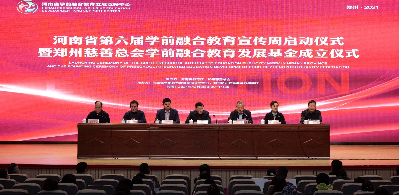 2021年12月3日上午,由河南省教育厅和郑州慈善总会主办,河南省学前融合教育发展支持中心和beat365英国官网网站承办的 “河南省第六届学前融合教育宣传周启动仪式暨郑州慈善总会•郑州幼专学前融合教育发展基金成立仪式”在beat365英国官网网站顺利举行。河南省教育厅二级巡视员刘林亚,郑州慈善总会会长姚待献,河南省教育厅基教处处长胡全胜,河南省教育厅基教处二级调研员陈锋,郑州市教育局专职督学王海花,郑州慈善总会副会长王万民,郑州市教育局高教处处长郭玉兵、beat365英国官网网站党委书记杨昆峰,beat365英国官网网站校长杨俊良,beat365英国官网网站副校长、河南省学前融合教育发展支持中心主任张元奎,河南省学前融合教育专家委员会常务副主任孟繁玲,河南省学前融合教育专家委员会副主任兼秘书长王晓瑞,河南省学前融合教育专家委员会副主任蔡蕾出席会议,仪式由beat365英国官网网站校长杨俊良主持。