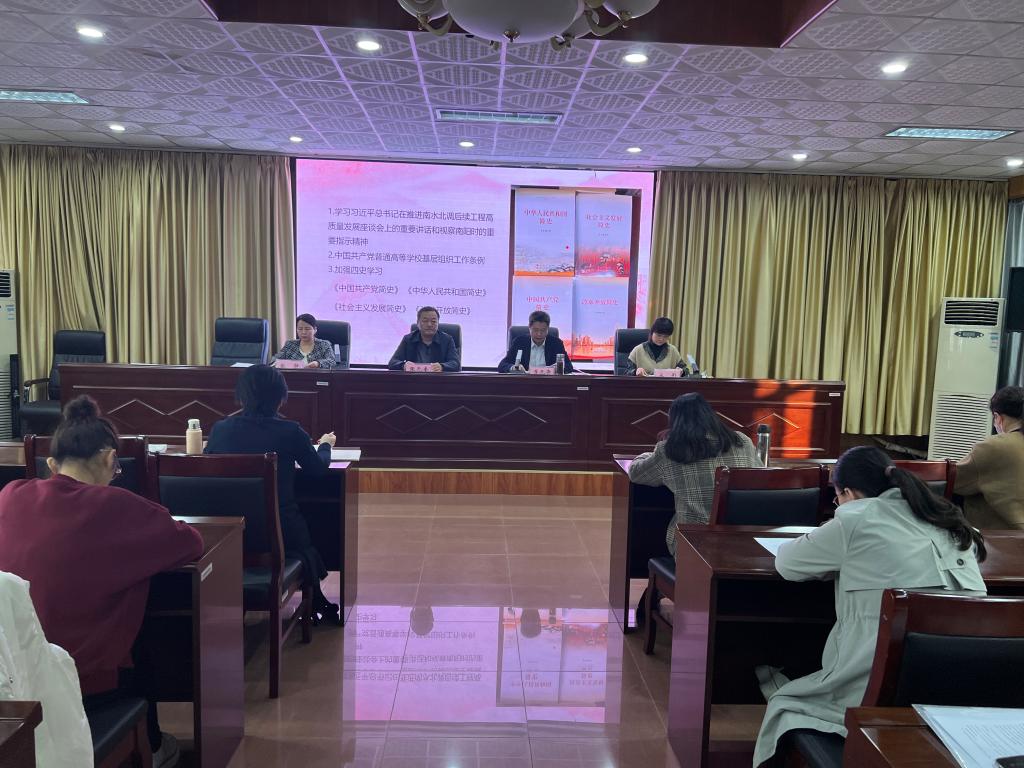 会上,纪检委员张静带领全体党员学习《学习习近平总书记在推进南水北调后续工程高质量发展座谈会上的重要讲话和视察南阳时的重要指示精神》,习近平总书记重要讲话和指示精神,为扎实推进南水北调后续工程指明了科学方向,为河南实现经济社会高质量发展注入了强大动力。组织委员宋彩领学《中国共产党普通高等学校基层组织工作条例》,该条例作为高校党的建设的基本法规,为加强高校党的工作提供了制度保障,推进高校党的工作制度化、规范化、科学化发挥了重要作用。