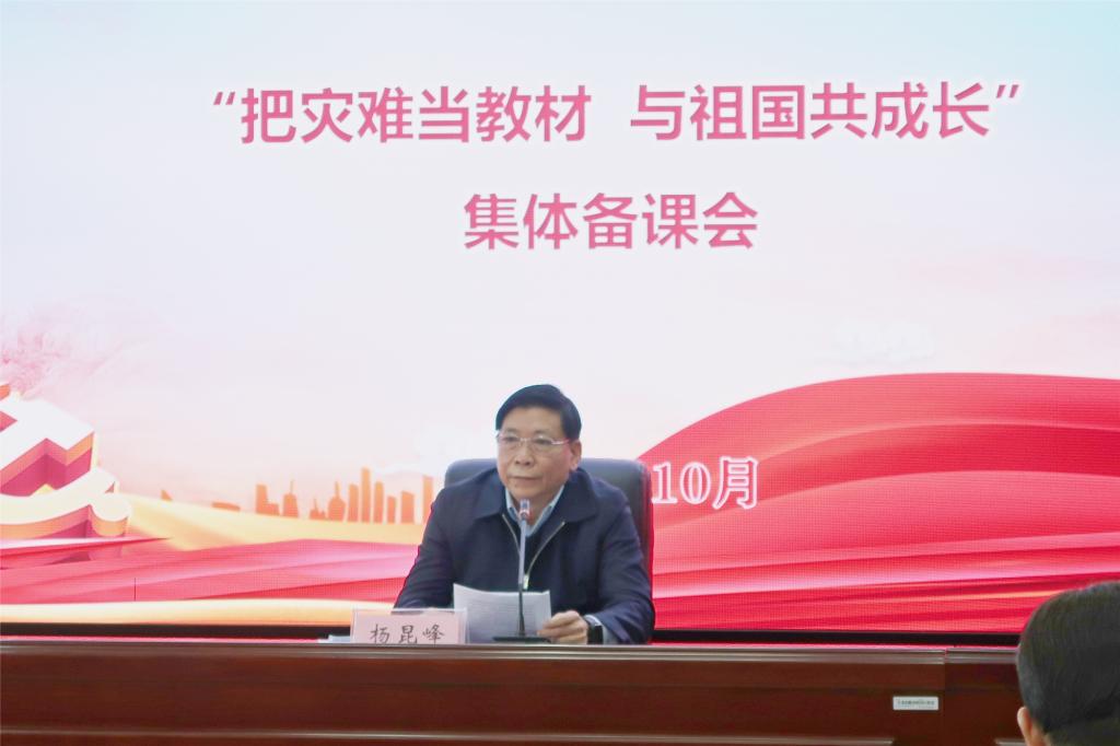 为深入贯彻落实省教育厅“把灾难当教材 与祖国共成长”主题教育活动,上好2021年秋季开学第一课,10月12日上午,思政教学部在杜岭校区五楼会议室召开“把灾难当教材 与祖国共成长”集体备课会,校党委书记杨昆峰、党委副书记郭旭娟、副校长张元奎出席会议,党政办、教务处部门负责人,各教学部主任和思政部全体教师参加会议,会议由副校长张元奎主持。