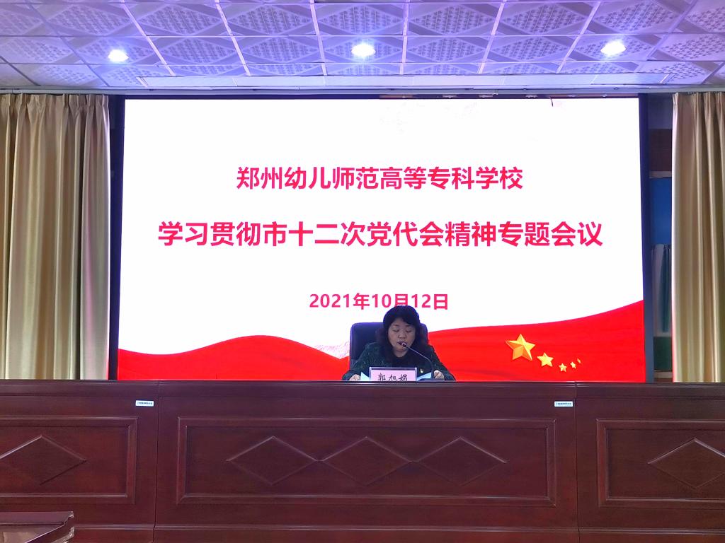 为深入学习贯彻市第十二次党代会精神,打造一支具有强烈责任感、紧迫感、使命感的党员干部队伍,把全校的智慧和力量凝聚到各项发展目标任务上来,10月12日下午,beat365在杜岭校区五楼会议室召开学习贯彻市第十二次党代会精神专题会议。党委副书记郭旭娟出席会议,各党支部书记、组织委员和宣传委员参加会议。