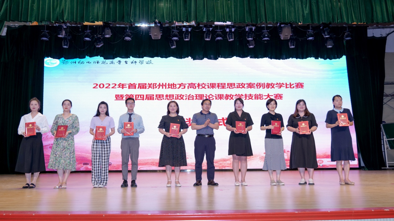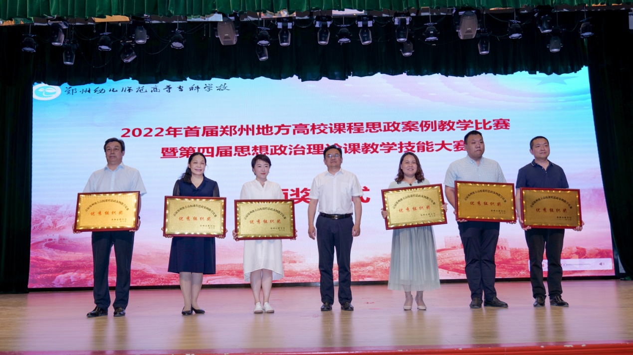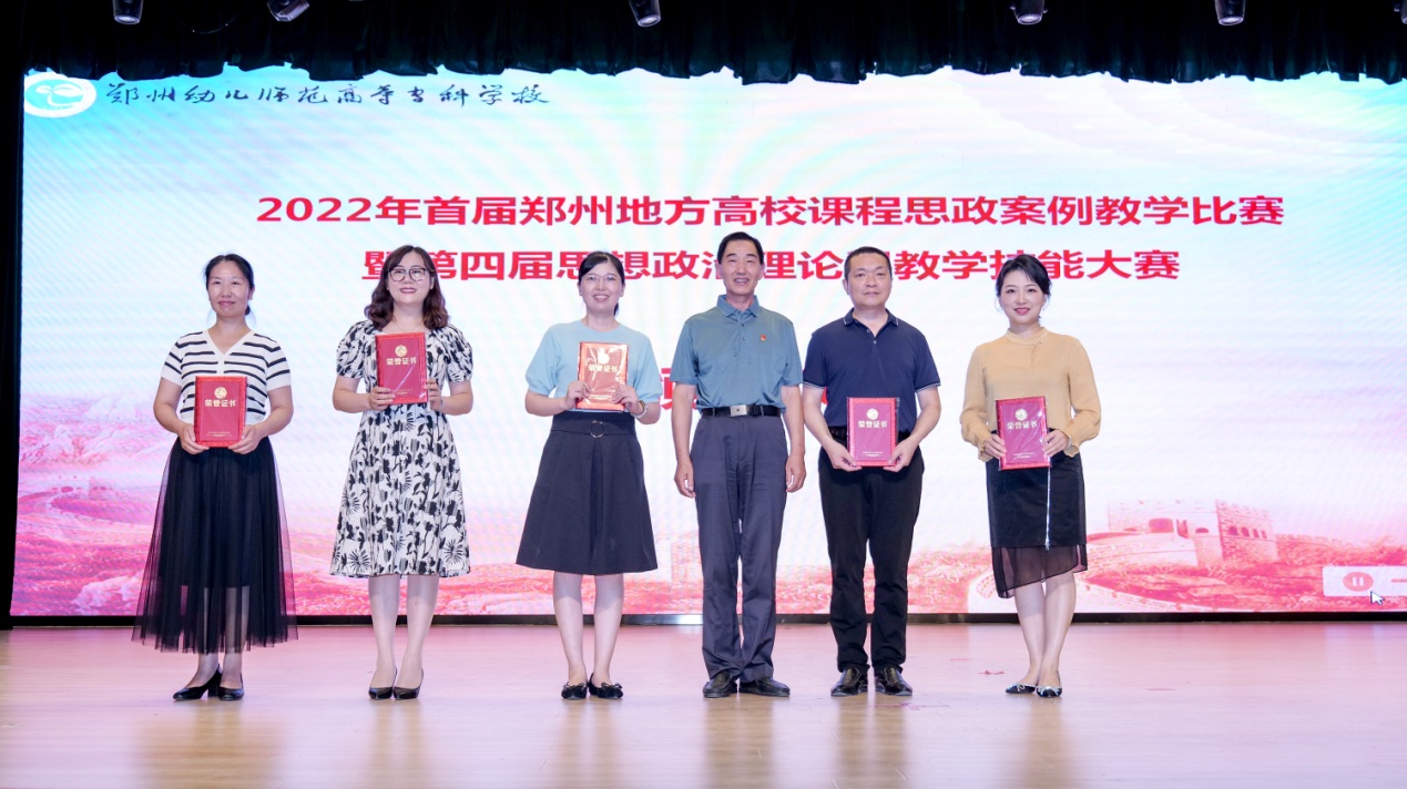郑州市教育局高教处处长郭玉兵为思想政治理论课特等奖选手颁奖
