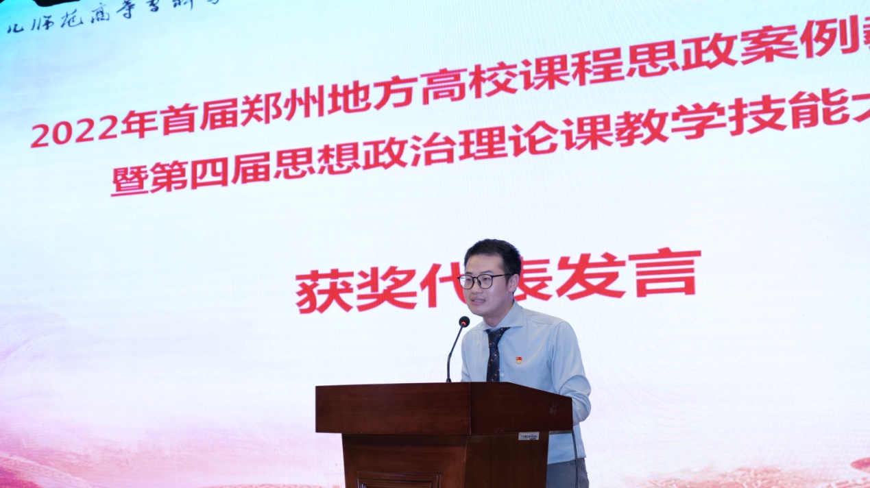郑州工商学院的汤希凯作为思政课获奖选手代表发言