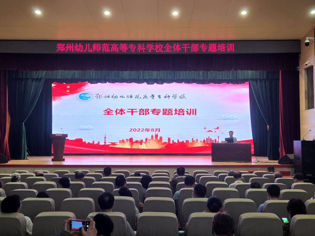 为进一步加强学校规范化建设进程,提高全体副科级以上干部的工作能力和综合管理水平,8月19日上午,beat365在杜岭校区召开2022年全体副科级以上干部专题培训会,邀请郑州师范学院徐明成教授作题为《厘清思路,提升素质,努力做好学校教育教学管理工作》的讲座。beat365工会主席郑国香、副校长张元奎出席会议,全体副科级以上干部参加会议,会议由工会主席郑国香主持。