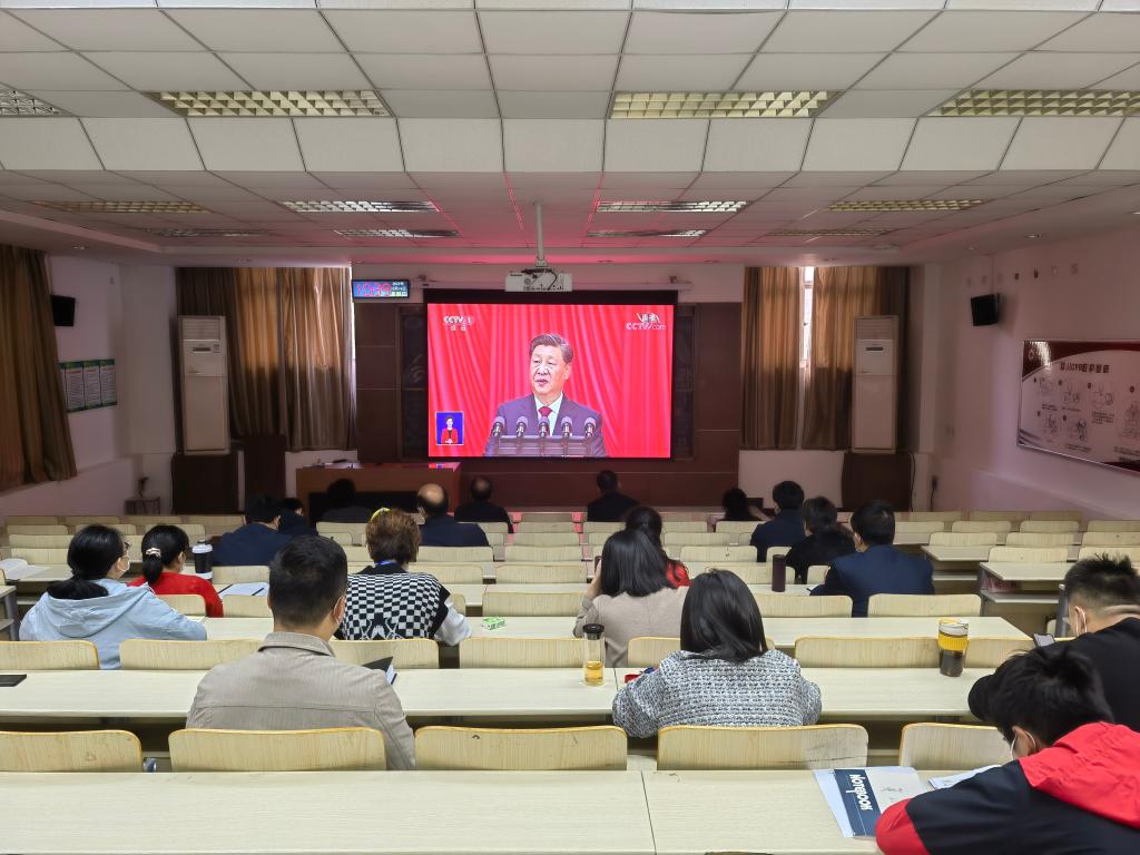 学校党委书记杨昆峰、校长杨俊良及全体领导班子成员和在校上班教职工分两个校区观看大会直播,各基层党组织、各部门、学院设立分会场,采用集中观看和个人观看相结合的方式组织师生线上、线下观看,共同庆祝党的二十大胜利召开。