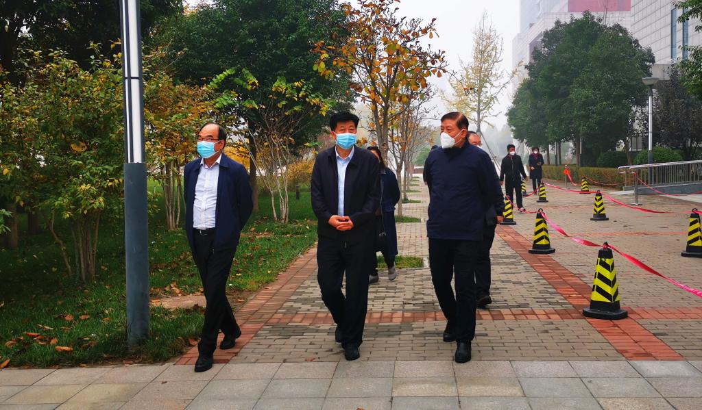 11月11日上午,郑州市教育局党组书记、局长楚惠东一行到beat365象湖校区检查指导疫情防控工作。学校党委书记杨昆峰、校长杨俊良等校领导和疫情防控工作组负责人参加走访检查。
