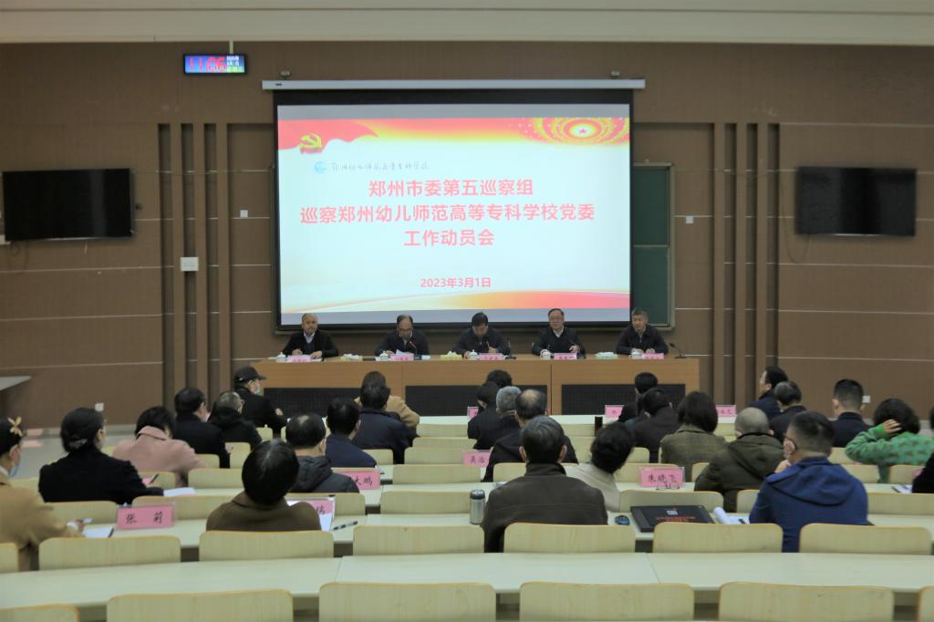 根据郑州市委统一部署,从3月1日起至4月28日,市委第五巡察组对beat365开展为期两个月的专项巡察。3月1日上午,郑州市委第五巡察组巡察beat365英国官网网站党委工作动员会在beat365象湖校区召开。市委巡察工作领导小组成员宁建海同志、市委第五巡察组组长袁葆林同志分别就做好本轮巡察工作发表讲话,beat365党委副书记、校长杨俊良同志作了表态发言。参加会议的有市委第五巡察组全体成员、市委巡察工作领导小组成员;郑州幼专党委领导班子全体成员、内设机构负责同志和下一级单位党政主要负责人;beat365纪委、组织、人事部门人员,市级及以上人大代表、政协委员、知名专家、学术带头人。会议由beat365党委副书记、校长杨俊良同志主持。