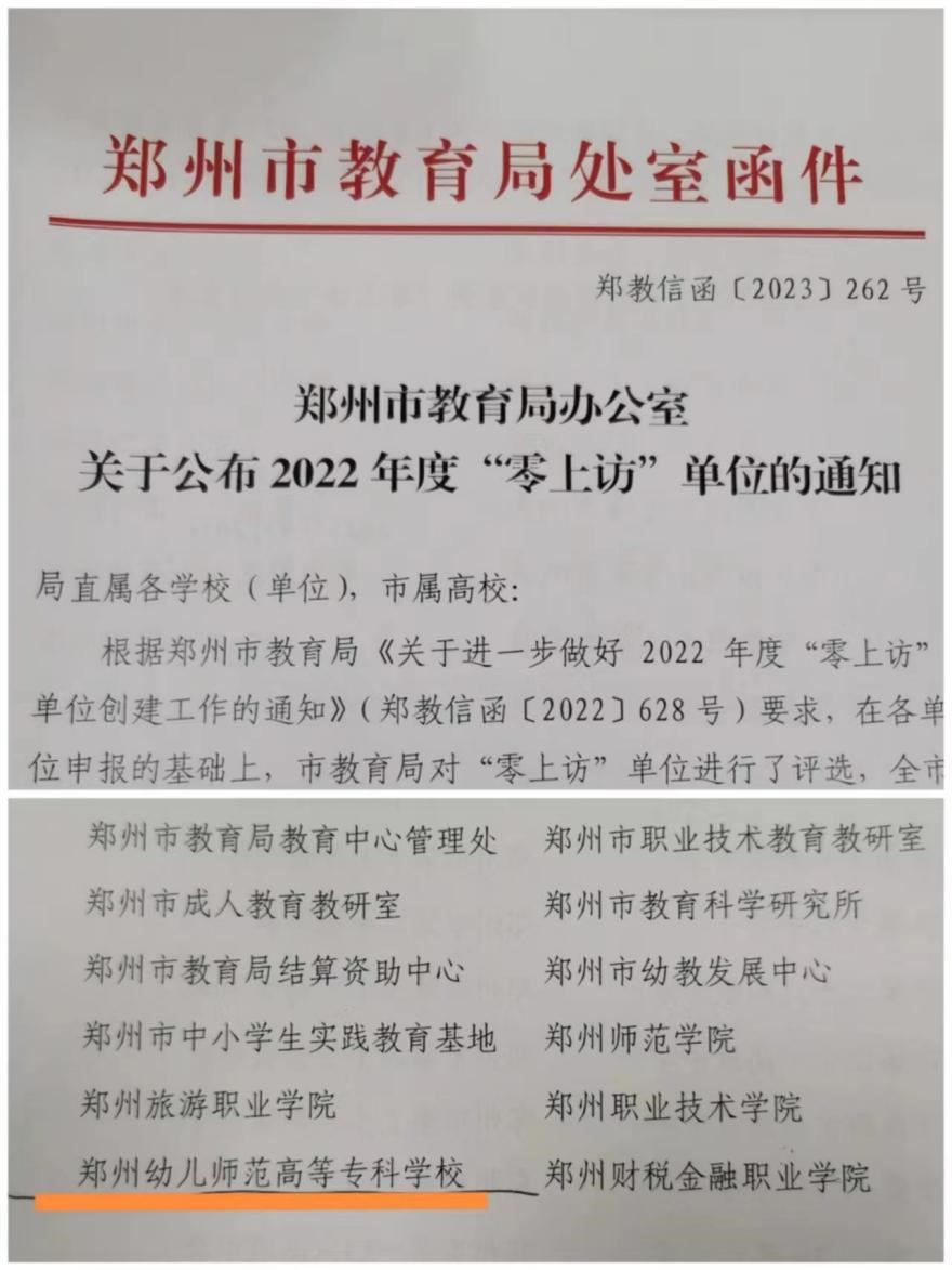 近日,郑州市教育局下发《关于公布2022年度“零上访”单位的通知》,beat365被评为2022年度“零上访”单位。