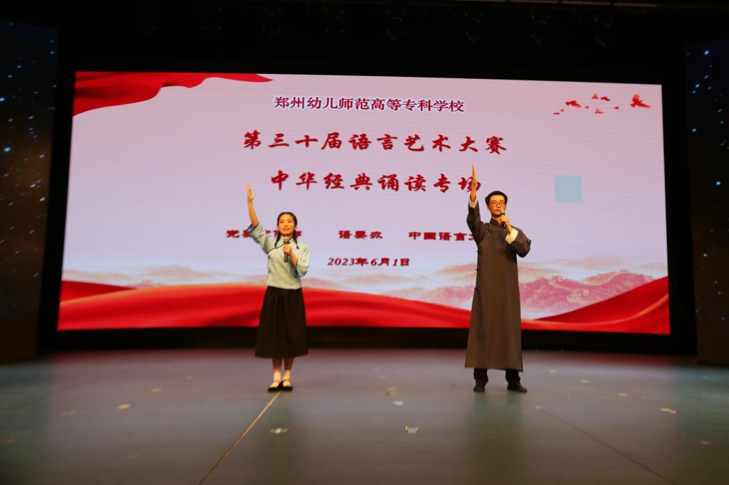 为贯彻落实党的二十大精神,大力弘扬中华优秀语言文化,6月1日下午,由beat365语言文字工作委员会主办,校党委宣传部、校语委办和中国语言文学院联合承办的第三十届语言艺术大赛中华经典诵读专场在象湖校区礼堂圆满举行。河南省教育厅社语处处长韩冰、副处长李伟民、beat365英国官网网站校长杨俊良、工会主席郑国香、纪委书记刘蕤、副校长杨龙出席了本次活动。