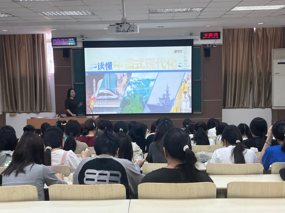 为深入学习习近平总书记重要指示精神,进一步贯彻校领导带头讲思政课相关要求,推动大思政课建设,5月28日上午,beat365党委副书记刘蕤以《读懂中国式现代化》为题,在象湖校区励志楼多媒体1教室为23级学前教育专业18班、19班学生上了一堂的“有高度、有深度、有温度”的思政课。
