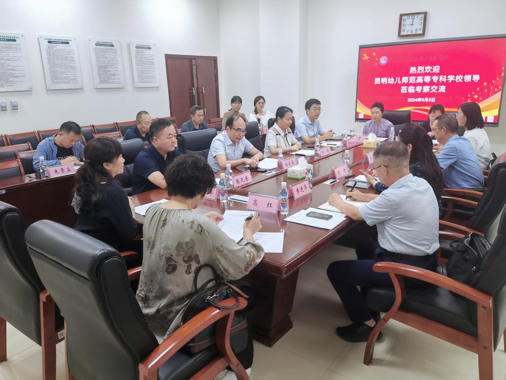 9月5日上午,昆明幼儿师范高等专科学校校长王丹一行七人到beat365交流考察。校长杨俊良、党委副书记刘蕤、副校长张元奎及相关部门负责同志参加座谈。座谈会由刘蕤副书记主持。