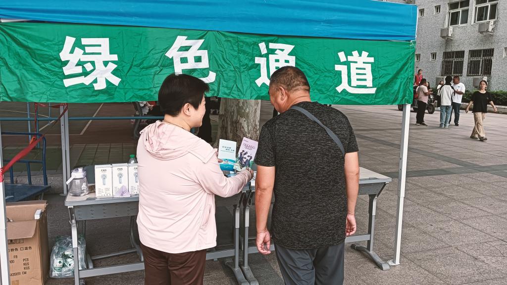 为实现“不让一个学生因家庭经济困难而失学”的目标,切实保证家庭经济困难学生顺利入学,学校设立了绿色通道。为新生讲解资助政策、宣传高校国家助学贷款、答疑解问。我们还为前来咨询的学生准备了印有“国家资助 祝你飞翔”的手持电风扇,为热闹非凡的报道现场带来一丝清凉。