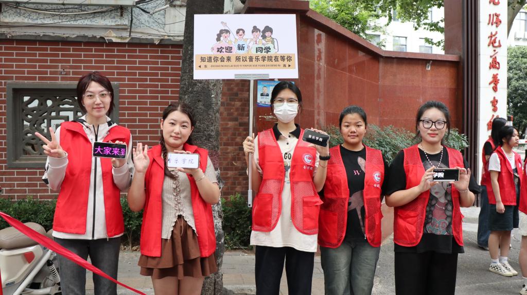 迎新志愿者们有的高举学院的迎新标语,发挥指示引导作用,有的帮助新生准备报到材料,有的扛起新生的行李,一路把新生护送到宿舍,看他们身上的红马甲,成为校园里最忙碌的一抹亮色。