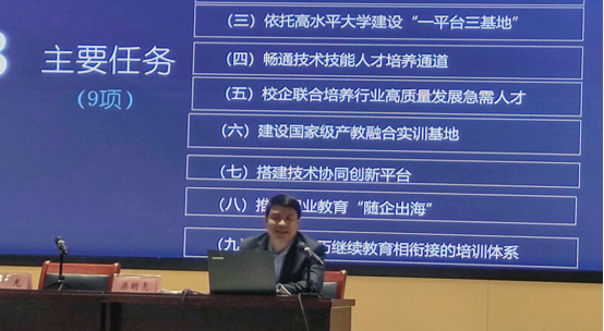 上午,郑州铁路职业技术学院教务处处长(双高办主任)、创新创业学院院长梁明亮教授开展了《职业教育高质量发展与新双高申报建设》专题讲座。梁教授从职业教育发展面临的形势和机遇、现代职教体系的建设思路和主要内容、职业教育高质量发展的路径和策略、双高申报材料的组织和撰写等方面做了讲解。他强调要研究申报文件、调研标杆院校、科学规划目标任务,并指出了可行性分析报告、专业群建设方案、任务书撰写等环节的注意事项。