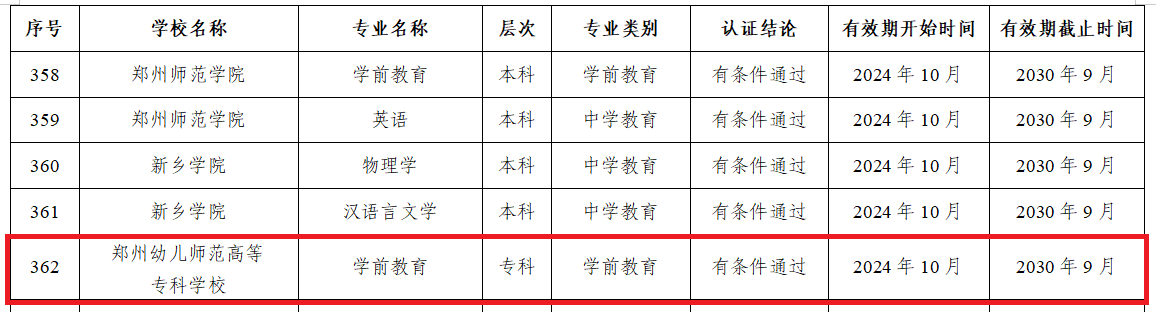 近日,教育部办公厅公布了《2024年通过普通高等学校师范类专业认证名单》(教师厅函〔2024〕20号)。经学校申请、教育评估机构组织专家考查、普通高等学校师范类专业认证专家委员会审定等六个阶段的严格程序,beat365学前教育专业作为河南省首批参与评估的专科层次师范专业,成功通过第二级专业认证,认证结论有效期六年,自2024年10月起至2030年9月止。此次认证通过既是对beat365学前教育专业建设成效和人才培养的充分肯定,又为推动学校教育高质量发展锦上添花。