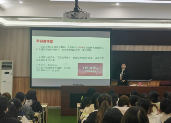 通过开展两会精神进课堂活动,老师们认真学习悟透两会精神,紧扣课程与两会内容,将两会精神有机融入到课堂教学中,让重大时政热点进课堂、进教学,不仅有助于提升思政课教学的针对性和实效性,还能使同学们进一步坚定理想信念,增强学习的内在动力。