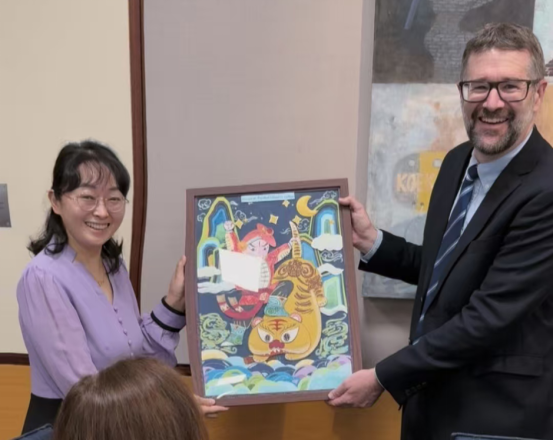 向伍伦贡大学(University of Wollongong)教育学院赠送beat365学生纸浮雕作品《武松打虎》