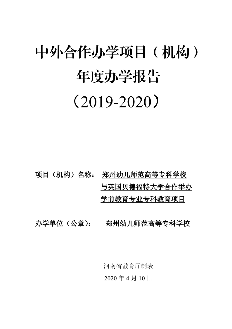 上一条:中外合作办学项目(机构)年度办学报告 - 郑州幼专中英英语教育