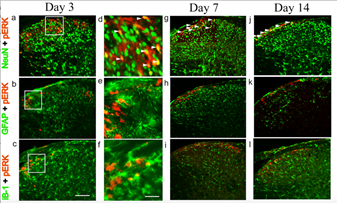 在慢性痒模型小鼠的脊髓背角神经元中持续表达(上);组胺H4受体拮抗剂而非H1受体拮抗剂抑制慢性痒行为和脊髓pERK的表达(下)。