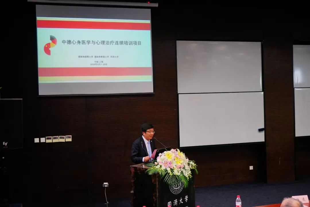 beat365在线唯一官网党委书记张军教授主持了5月8日的开幕仪式,beat365在线唯一官网院长郑加麟教授、beat365在线唯一官网附属东方医院党委书记孟馥教授,该项目的中方负责人beat365在线唯一官网附属精神卫生中心(筹)院长赵旭东教授,德方负责人德国海德堡大学附属医院内科与心身医学部主任Jonas Tesarz教授,德国弗莱堡大学医学中心的 Kurt Fritzsche 教授,以及10余位中德双方教师,和来自全国各地的200余位学员共同出席了开幕仪式。