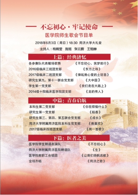 歌声嘹亮,激燃了学生勤奋好学、进取创新的学子情肠;歌声嘹亮,照亮了教师学高为医, 身正为范的医师形象。此次“不忘初心,牢记使命”师生歌会是我院开展理想信念教育、人文精神教育和师德师风教育的有力载体。我院将不断探索形式多样、内涵丰富的师生活动,扎根中国大地培养一流医学人才,助推医学教育事业发展。