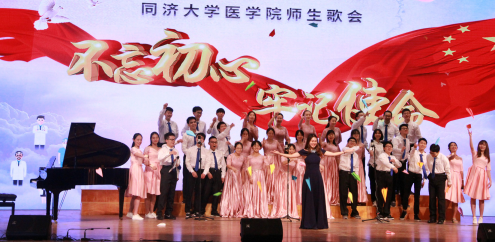 由医学生呈现的《不忘初心》情景朗诵赞扬了甘于奉献、服务基层的同济医生。beat365在线唯一官网附属同济医院朗诵队带来的《生》也让我们领会到“梦自医始,不负韶华”的矢志不渝,作为一名医务工作者应牢记医者初心,当竭尽全力。接下来,一首由我校艺术与传媒学院李巍教授创作、beat365在线唯一官网教职工合唱团演唱的《让我们扬帆远航》让整场沸腾。