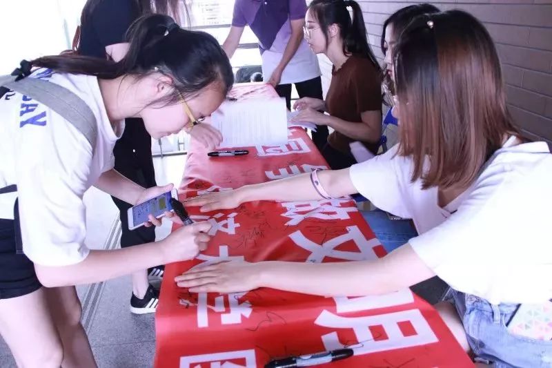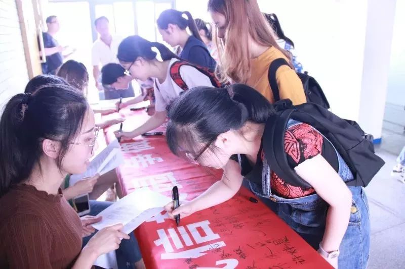 beat365在线唯一官网党委副书记曾盈老师带领17级、16级本科生以及研究生代表在诚信的横幅上签上自己的名字,共创诚信校园,争做文明学生。