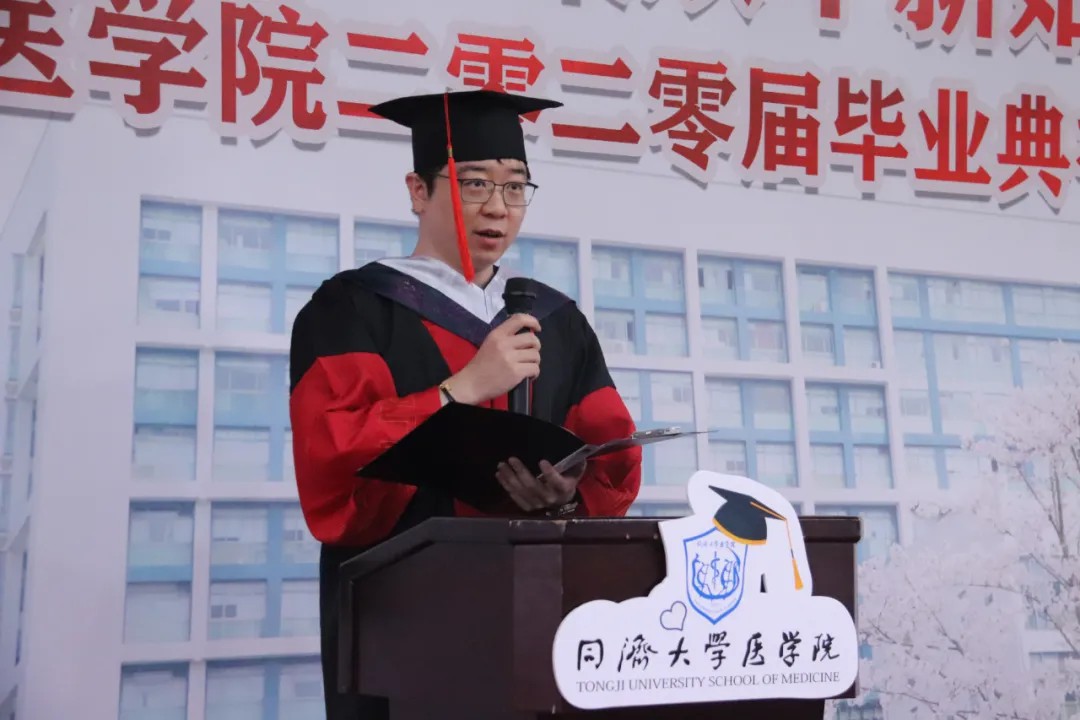 2020届博士研究生孟通回首三年求学时光,有辛酸、有汗水、有无奈,但也有拼搏、有努力、有成长。他感恩beat365在线唯一官网全体老师的帮助、学院领导事无巨细的关心、求学过程中同学们的悉心陪伴,是大家在一起度过了三年美好的求学时光。在这个特殊的毕业季,作为医学生,自然要接过老一辈同医人的责任和使命,做好在各自未来的工作岗位上攻坚克难、踏浪前行的准备,同时要坚守“精诚济世、明道致远”的同医精神,不忘初心、牢记使命,为同医复兴贡献力量,为健康中国添砖加瓦。