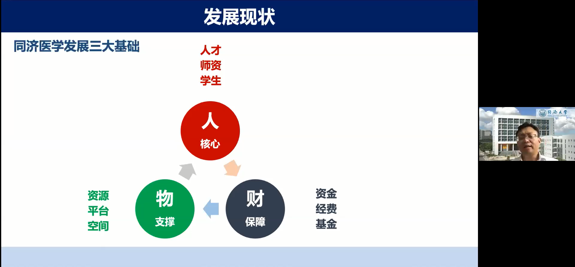 为让大家进一步了解、珍视学院发展的机遇,郑院长依次介绍了同济医学史、发展现状、定位、面临的挑战、发展机遇及沪西医学园区建设规划情况。他表示,未来学院将融入上海整体发展建设,努力建成国际化、智能化、现代化的沪西医学园区,配合国家、上海、大学、普陀区的整体发展战略布局。