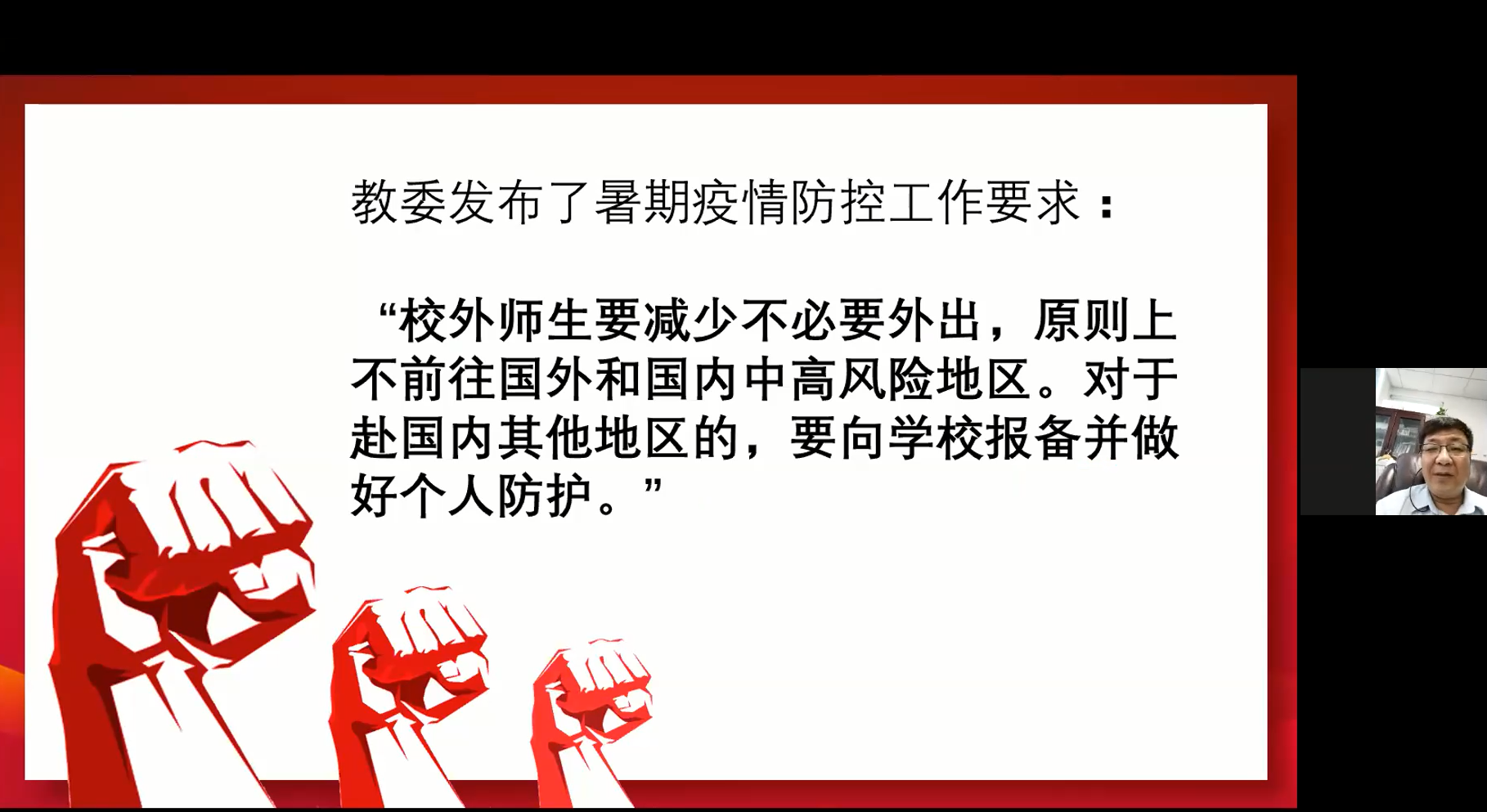 张军书记向全院职工明确了暑期疫情防控工作的要求,并再次强调第五轮学科评估对师生、学院、学校的重要性,希望大家真正从思想上重视起来,从行动上积极整合各类学科资源,服从大局,共同努力,争取在学科评估中交出优秀的答卷。另外,此次沪西搬迁对于学院的发展至关重要,希望大家群策群力,做智慧的医学人,共同建设学院的美好明天。