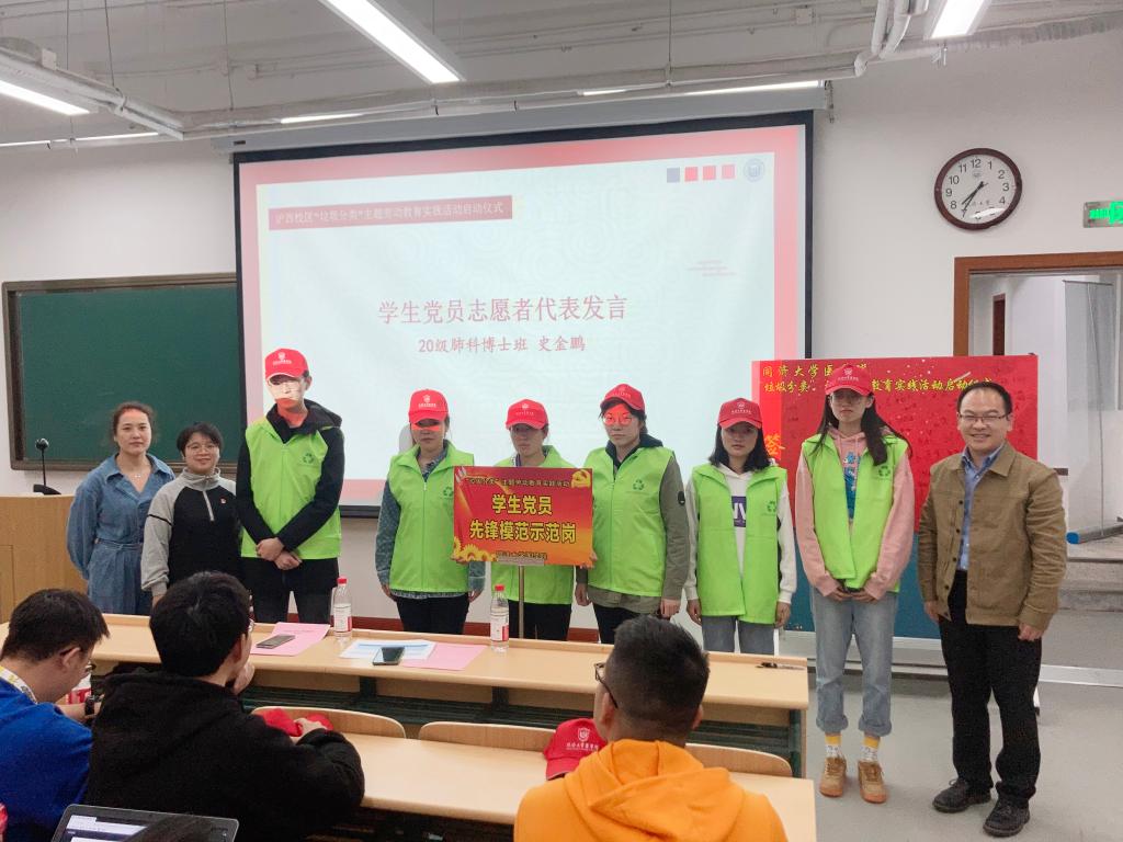 20级肺科博士班史金鹏作为党员志愿者代表发言,号召每一位共产党员和学生骨干发挥先锋模范作用,勇挑重担,敢于奉献,积极投身于“垃圾分类”主题教育实践活动。“星星之火,可以燎原”,每位党员贡献一份自己的光和热,定可点燃璀璨光明,扩大学校文明实践的影响,推动社会整体进步,为提升国民素质、提升国家形象、改善生活环境作出表率。