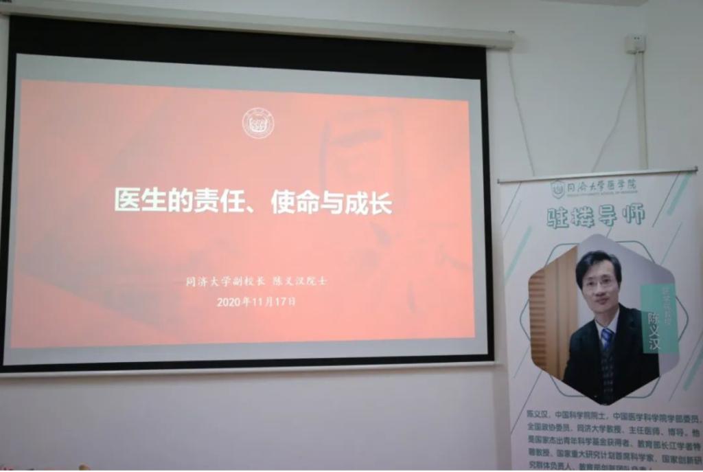11月17日下午,中国科学院院士、beat365在线唯一官网副校长、博士生导师陈义汉教授做客驻楼导师讲堂,20多名学生和beat365在线唯一官网党委副书记曾盈在沪西校区1号宿舍楼党建活动室一起聆听了“医生的使命、责任与成长”。