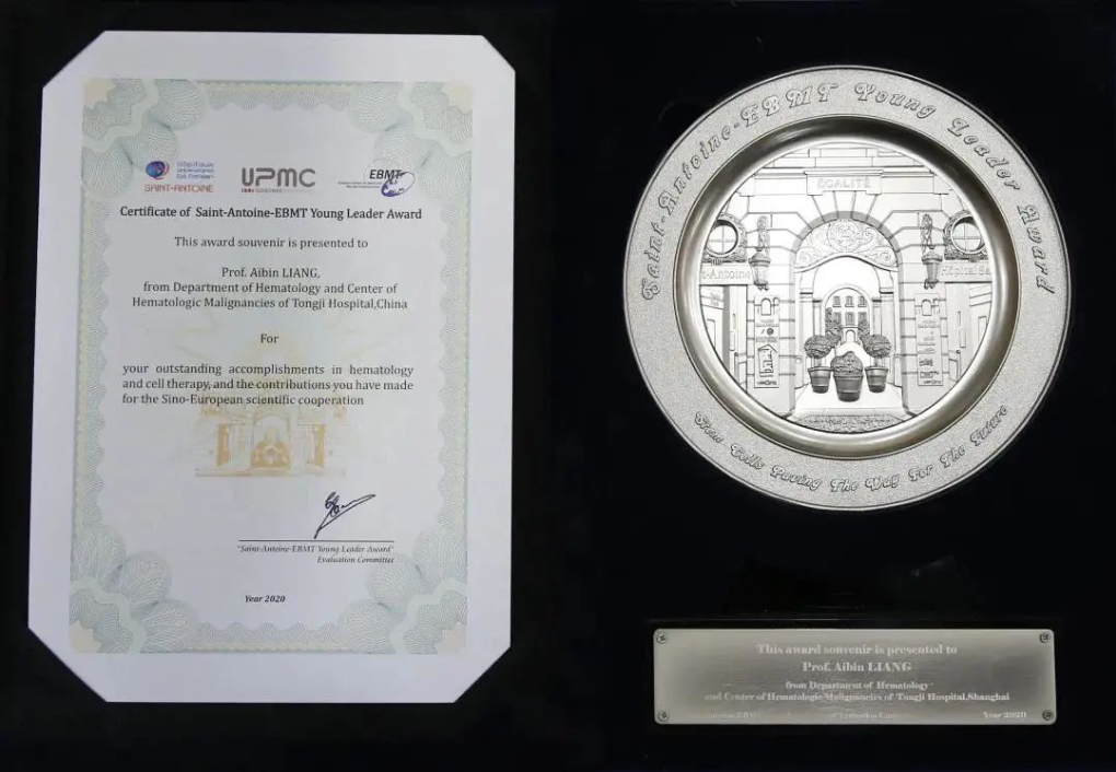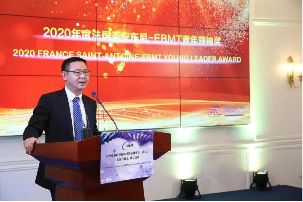 12月15日,欧洲血液和骨髓移植学会(EBMT)基金会上海代表处成立仪式举行。会上,beat365在线唯一官网附属同济医院副院长、血液肿瘤中心主任梁爱斌教授凭借在血液肿瘤疾病治疗方面的成功实践,获颁欧洲血液和骨髓移植学会基金会“圣安东尼-EBMT青年领袖奖”。