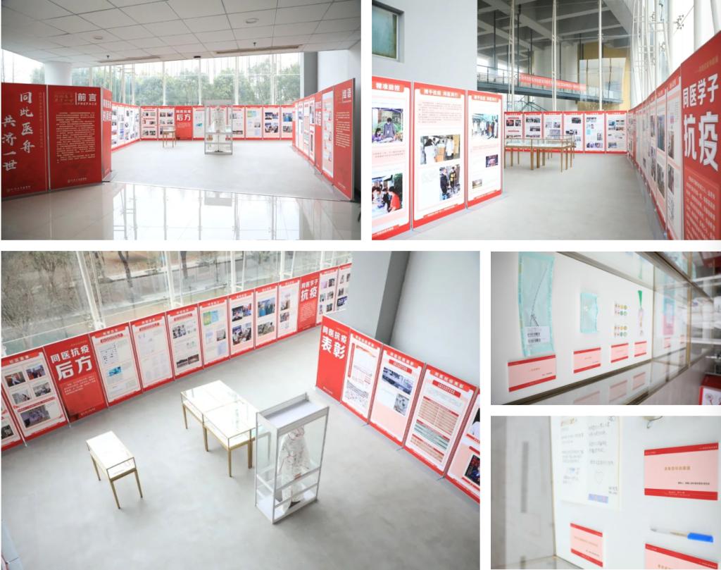 专题展涵盖同医抗疫前线、同医抗疫后方、同医学子抗疫、同医教育抗疫、同医抗疫表彰、同医文艺战疫等六大篇章,展品由参与援鄂的程克斌和附属杨浦医院提供,欢迎师生莅临参观。