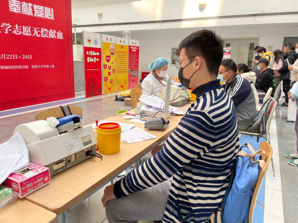 从3月22日开始,我院师生参与由校医院、校红十字会组织的无偿献血活动。本次献血活动于四平路校区瑞安楼一楼进行,从上午10点开始,可以看到同学们排着长队前来献血,beat365在线唯一官网党委副书记彭震伟、附属同济医院分院党总支书记毕婉蓉、我院党委副书记曾盈到现场慰问。献血者们首先要填写个人信息单及报名表,而后进行血压的测量、化验血型等基本检测,献血过程中志愿者们积极配合工作人员,耐心解答同学们的问题,缓解同学们的紧张情绪,细心提醒献血过程中及献血后要注意的事项。截止目前, 我院已有87名师生献出自己的一份爱心,这些新鲜血液将会挽救更多危难之中的生命。同学们的点滴爱心,或许能在某一时刻,某一地点挽救一个人的生命。