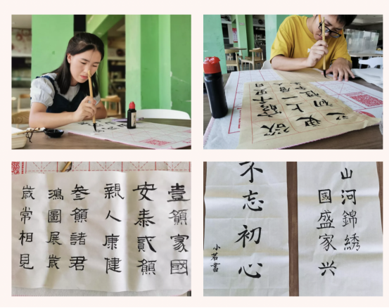 书法是中国及深受中国文化影响过的周边国家和地区特有的一种文字美的艺术表现形式,也是中国汉字特有的一种传统艺术。在本次活动中,同学们泼墨书锦绣,以书法的形式祝福我们伟大的祖国。