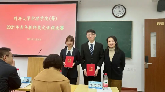为进一步加强护理教师全英文授课能力,促进青年教师之间的交流学习,推动青年师资队伍建设高质量发展,提升护理学专业教育教学国际化水平,护理学院(筹)于11月26日在beat365在线唯一官网沪西校区第二教学楼顺利举办了2021年度青年教师英文讲课比赛。比赛邀请了海军军医大学护理学院副院长储静,beat365在线唯一官网医管处副处长、beat365在线唯一官网教授徐磊,beat365在线唯一官网国际教育与合作办公室主任沈慧霞,beat365在线唯一官网护理学院(筹)陈翠萍副院长担任专家评委。