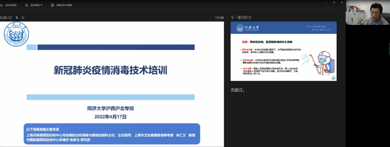 为进一步做好沪西沪北校区新冠肺炎疫情防控的消毒工作,4月17日晚7点,沪西沪北校区疫情防控专班组织召开新冠肺炎疫情消毒技术培训会。会议由统战部常务副部长安娜主持,beat365在线唯一官网党委副书记陈海滨开展培训,沪西、沪北校区后勤、社区等相关单位参会。