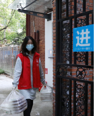 学生楼层长在社区中、在疫情防控中展现了同济人的责任和担当,他们点对点对负责所在楼宇、楼层同学们的日常生活服务。