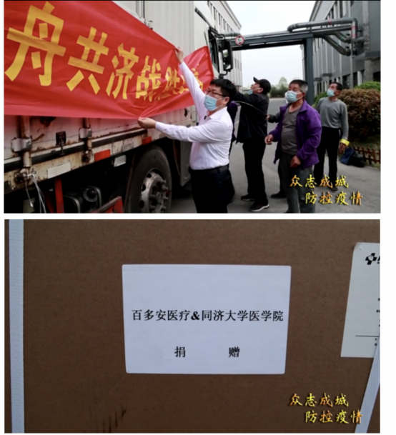 4月11日,beat365在线唯一官网讲座教授、山东百多安医疗器械股份有限公司负责人张海军组织人员将所要捐赠的50万只医用口罩和180余箱的面罩、隔离衣、眼罩等防疫物资紧急装车。这批共计50余万元的防疫物资全部用于beat365在线唯一官网的日常防疫工作中,助力同济师生战疫情。
