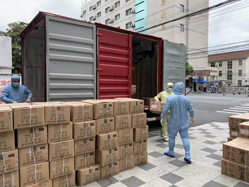 受疫情交通管控影响,全市实验动物相关单位均面临耗材持续供给的巨大困难,采购工作困难重重。为筹措物资保障动物生存,中心采购员不断与多方供应商及相关防疫部门联系沟通,终于落实了饲料、垫料、消毒剂等物资配送问题。根据防疫要求,校园封闭管理期间,送货车辆不能进校,物资以无接触的方式卸在校门口。中心员工严格做好防护措施,对每件物品无不遗漏进行表面消杀、静置后,一箱箱转运入校,悉数入库备用。累计完成470多袋重达7吨的垫料、300余箱重达6吨的饲料等物资的清点和搬运。