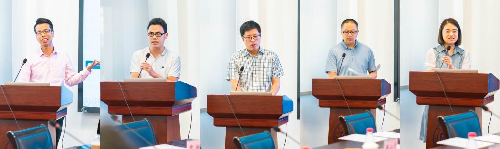 前沿科学研究基地青年汇报研究工作(从左到右依次为:张兵波教授、霍敏锋研究员、夏骁寰研究员、解端阳研究员、金佳丽副研究员)
