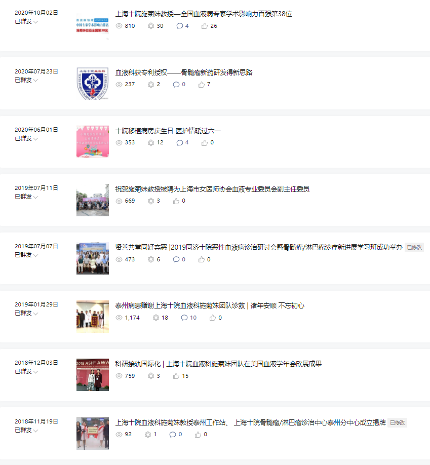 班级是她的核心朋友圈,由此向外继续扩展,在研究生会中发光发热。校研会中的“声音邮局”系列、院研会的“GRAD”、“迎新晚会”和“博思论坛”系列,共计11篇推送文稿都是她在夜深人静的自习室,一心创造,字字斟酌,那是她对研会倾注的全部心血。同时,将所学新媒体技能受用面扩大,独立运营上海市第十人民医院血液科公众号,从科室介绍、就医流程、疾病科普、科室新闻等,向关注十院血液的病人及家属,讲好十院血液科的故事,做好宣传幕后工作。