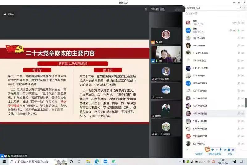 曾盈副书记以“深入学习贯彻党的二十大精神,自觉尊崇党章,模范践行党章”为主题进行宣讲,带领beat365在线唯一官网师生从二十大党章修改的背景、二十大党章修改的主要内容两个方面出发对二十大党章进行了深入学习。她强调,beat365在线唯一官网师生应当将学习党章,践行党章,不忘初心,牢记使命,忠诚履行党章赋予的职责铭记在心。