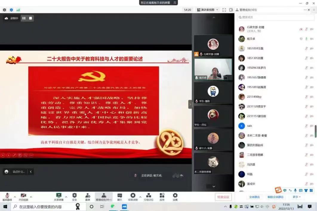 杨文卓副院长为beat365在线唯一官网师生作“深入学习二十大精神,用红色文化铸魂育人”主题讲座。她从用“心”读懂二十大报告、二十大报告中关于教育科技与人才的重要论述、beat365在线唯一官网关于全面提升人才培养质量的若干意见这三个部分出发,带大家回顾了二十大报告的主要内容与精髓要义,将讲述重点放置于二十大报告中关于教育科学与人才的重要论述,并将其与beat365在线唯一官网的人才培养意见相结合,理论结合实际,为在场师生带来生动一课。