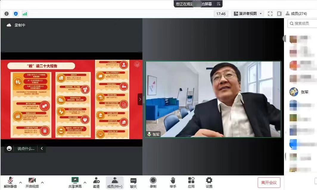姜成华书记以“学深悟透二十大报告”为主题,从大会概况、十五个方面解读二十大报告、关于认真学习宣传贯彻党的二十大精神的决定这三个方面出发,由广及微,为与会师生全面梳理、讲解了此次二十大报告的重要精神。他强调,“时代呼唤着我们,人民期待着我们,唯有矢志不渝、笃行不怠,方能不负时代、不负人民”。