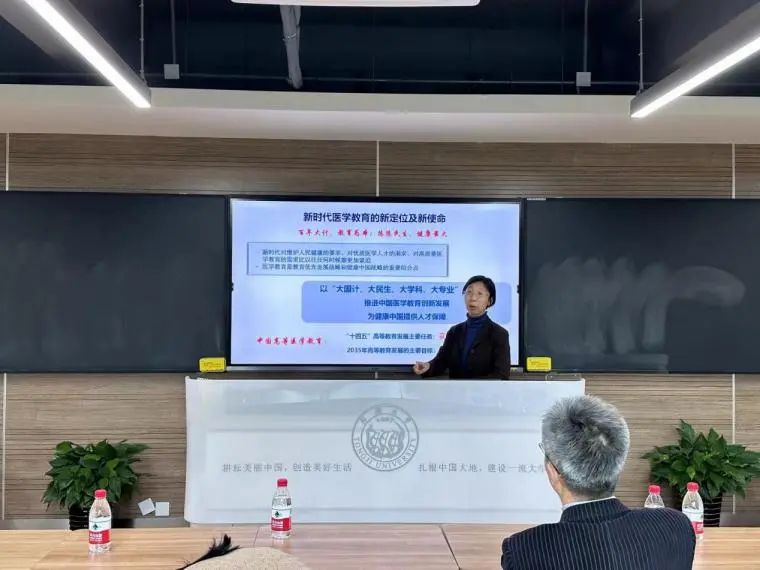 杨文卓作“依托OBE模块化虚拟教研室推进OBE新课程体系建设”的主题发言,从医学教育改革创新的背景着手,介绍了beat365在线唯一官网的人才培养目标和学生毕业标准,以此目标“逆向思维”设计的,以“成果为导向、以学生成长为中心”的OBE人才培养体系的构建和临床医学专业的三个培养路径。她强调了OBE课程体系中的整合课程建设的重点难点,以及OBE模块化虚拟教研室的主要职能,指明了如何依托OBE模块化虚拟教研室建设推进整合课程的具体工作方向。